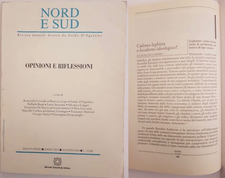 È il mio primo scritto scientifico, estratto sintetico della mia Tesi di Laurea che aveva come titolo La genesi di un soggetto politico nella Prima Repubblica: La Lega Nord (Relatore Prof. Giulio Machetti e Correlatore Prof. Percy Allum). Tra le prime tesi di laurea discusse nel Mezzogiorno sull’argomento. La Lega Nord, all’epoca della mia tesi (anno accademico 1996-97), era già un partito con oltre 18 anni di storia.